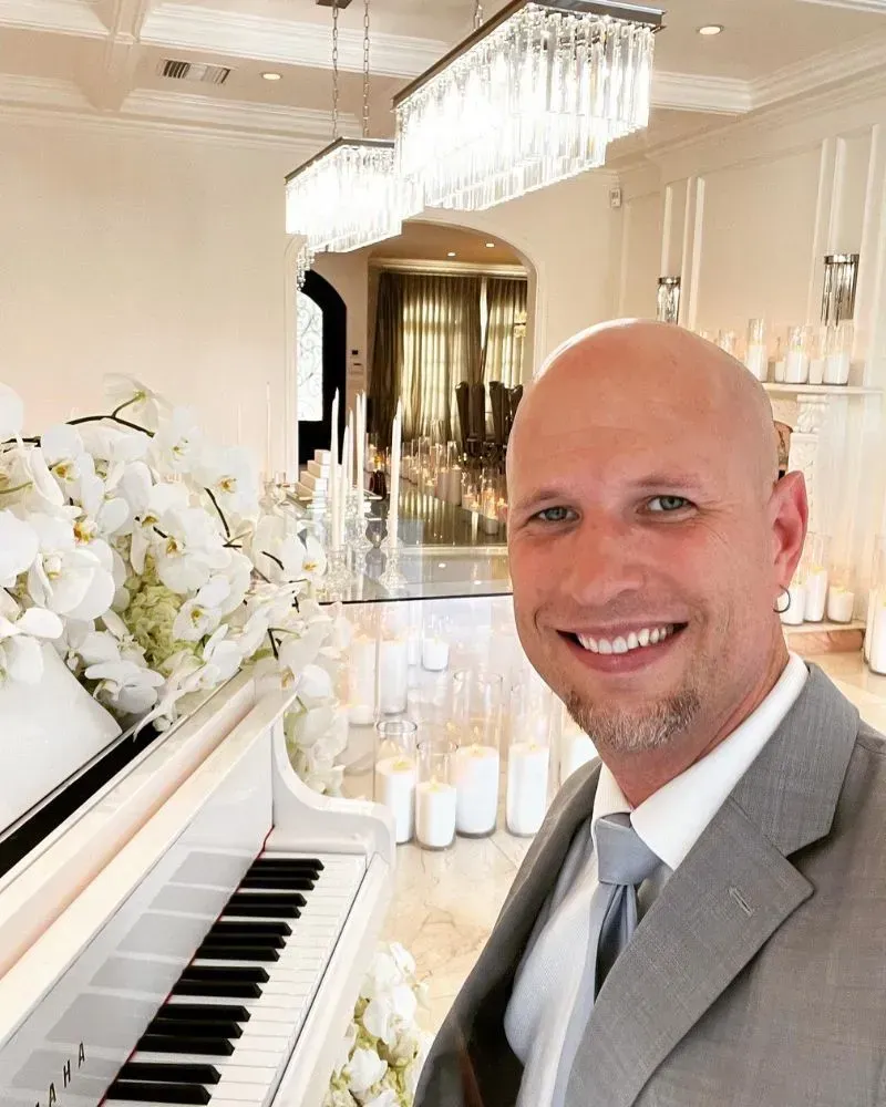 For clients who want to make a visual statement, Jeremy offers a white baby grand piano shell. This signature luxury upgrade features an elegant piano shell that houses his professional keyboard and transforms any performance space into something truly extraordinary.